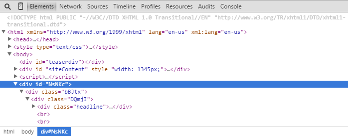 The sourcecode shows the div that displays this message. The name indicates that the div id is random, refreshing the page and inspecting the div again proofs that. Therefore a black or white-listing based on the div id would not work. Now search for the id of the div in the code by pressing Ctrl+F. One of the matches is: